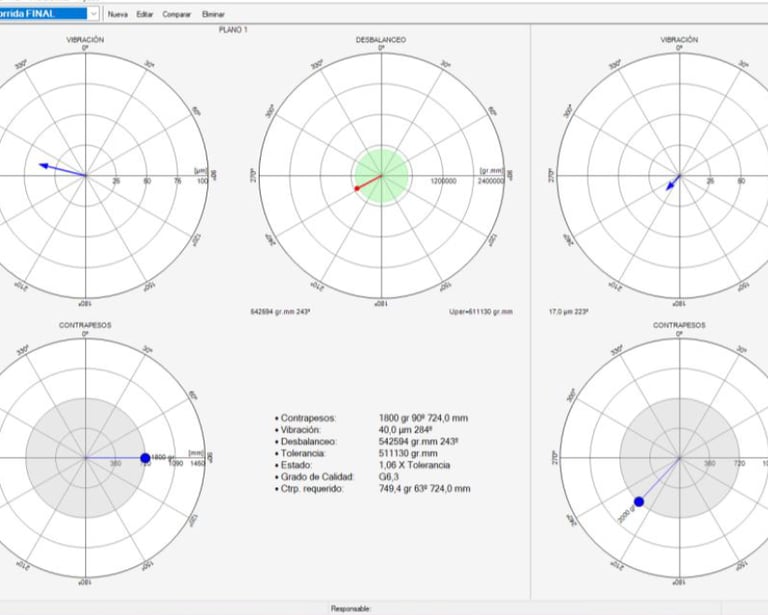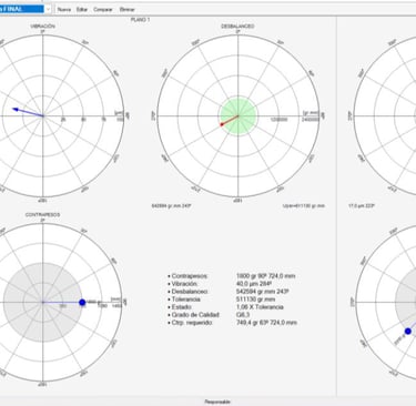 Ejecución de balanceo dinámico directamente en campo para rotores de gran masa y baja o alta velocidad.